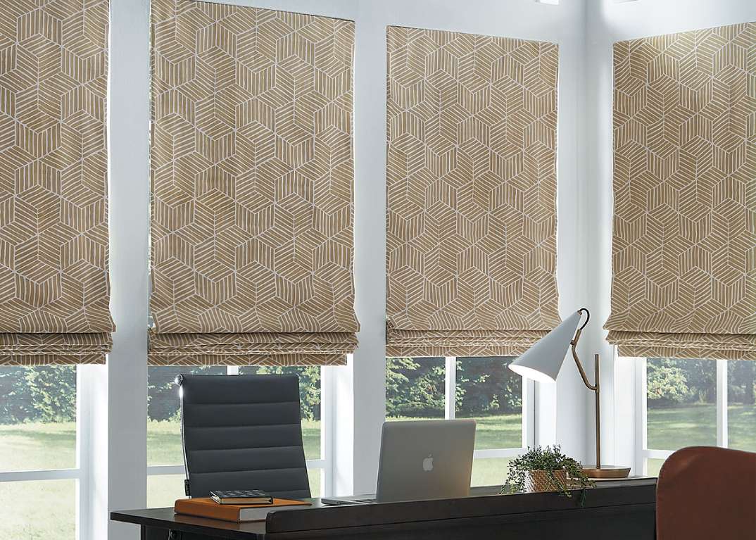 Looking for convenience? Ask about our motorized Roman shades, which offer effortless control at the touch of a button. You can also layer Roman shades with curtains or opt for Roman shade blinds for enhanced light filtering.